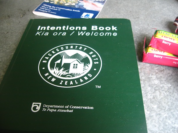 Before leaving the hut, we signed the Intentions Book where we’re meant to inform DOC of our names and details of our tramp, in case we get lost or injured.